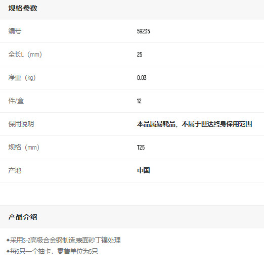 首頁>產(chǎn)品中心>螺絲批>旋具頭組套>世達(dá)5件6.3mm系列長花形旋頭T25