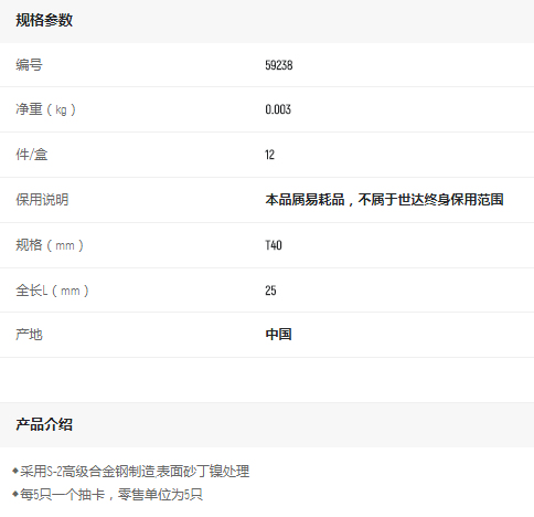 首頁>產品中心>螺絲批>旋具頭組套>世達5件6.3mm系列長花形旋頭T40