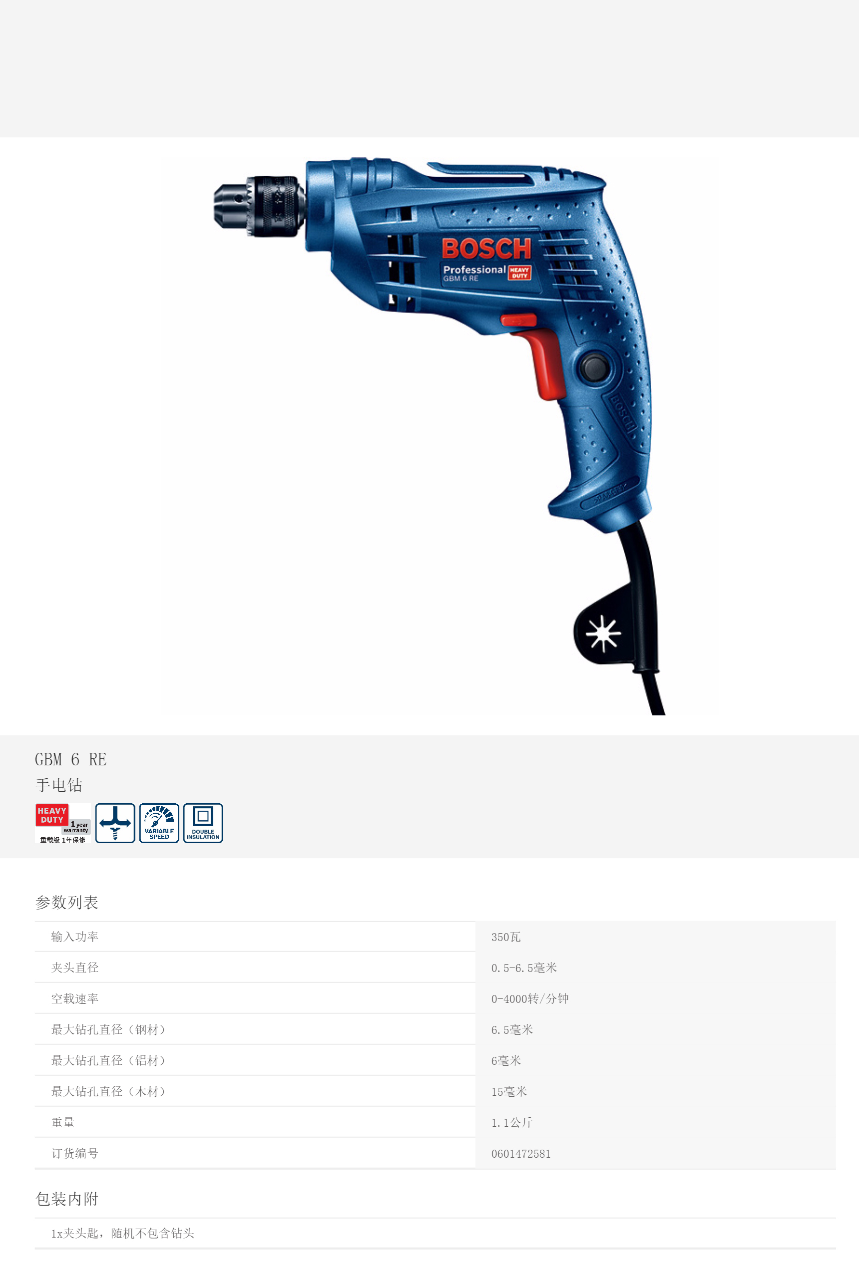 產(chǎn)品名字:博世手電鉆GBM6RE