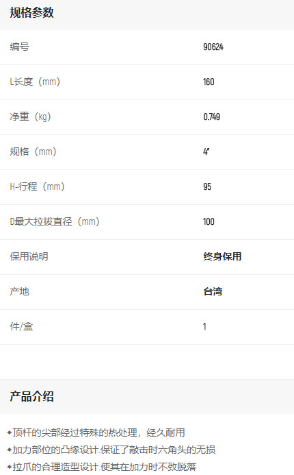 產(chǎn)品名字:世達2爪拉馬4寸