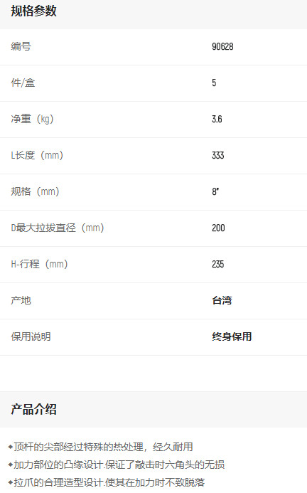 產(chǎn)品名字:世達(dá)2爪拉馬8寸