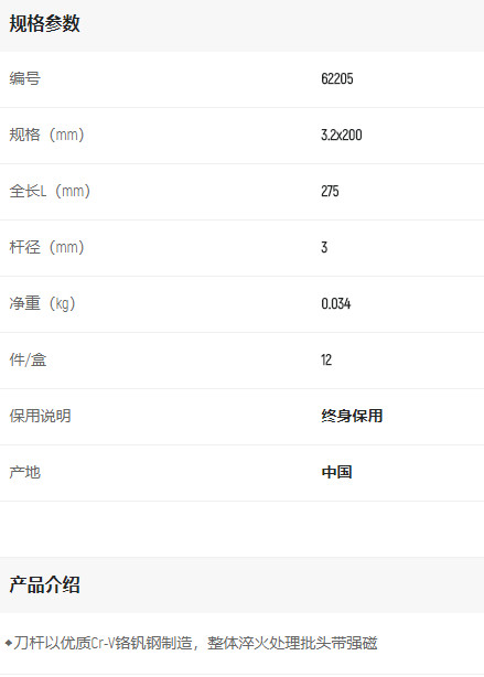 產(chǎn)品名字:世達(dá)A系列一字批3.2mm*200mm