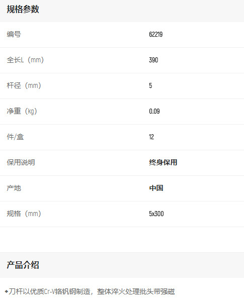 產(chǎn)品名字:世達(dá)A系列一字批5x300mm