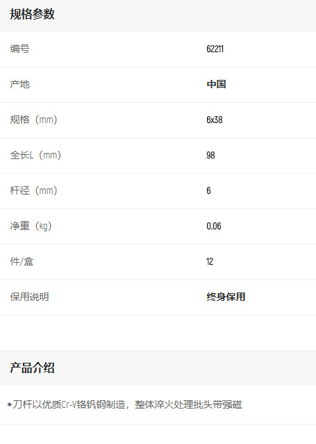 產(chǎn)品名字:世達(dá)A系列一字批6x38mm