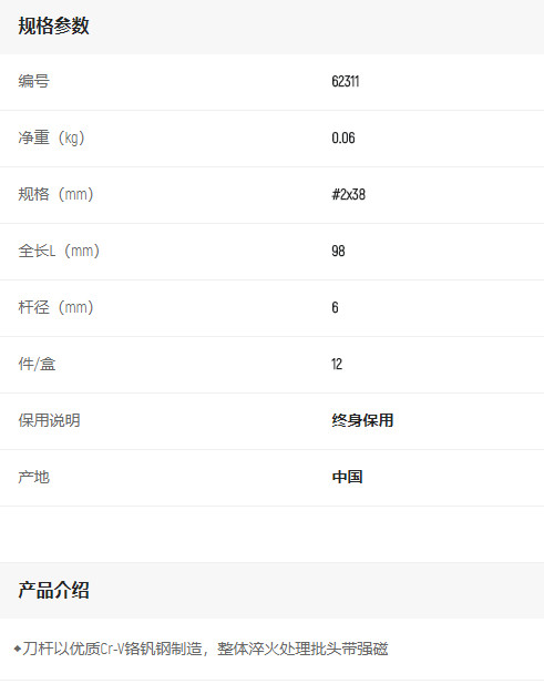 產(chǎn)品名字:世達(dá)A系列十字批#2x38mm