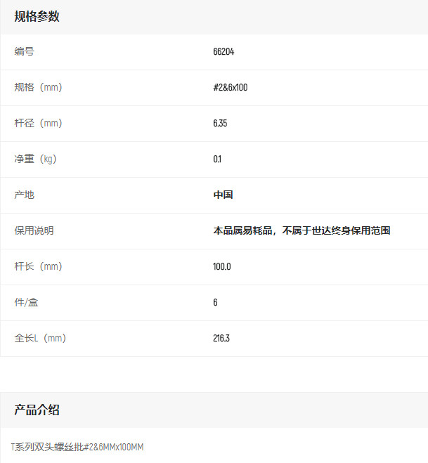 產(chǎn)品名字:世達(dá)雙頭螺絲批#2-6x100mm