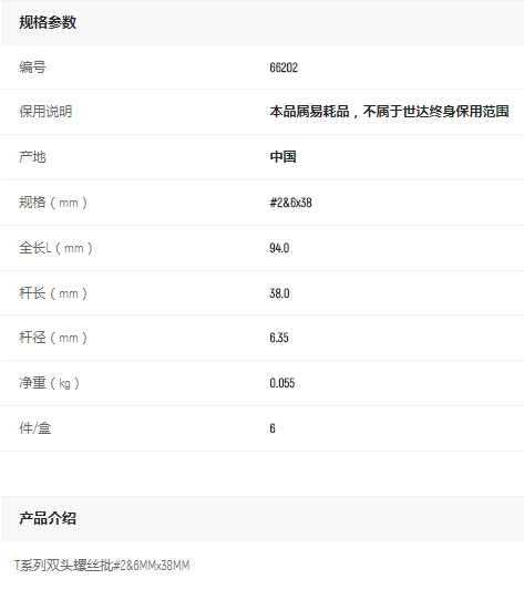 產(chǎn)品名字:世達(dá)雙頭螺絲批#2-6x38mm